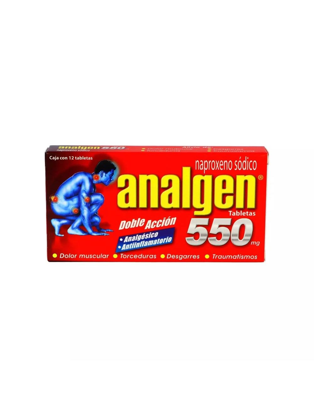 Información de uso y recomendaciones para el producto ANALGEN 550 MG TABLETA 12 GPO VI. Consulta instrucciones del empaque y, si aplica, orientación profesional.