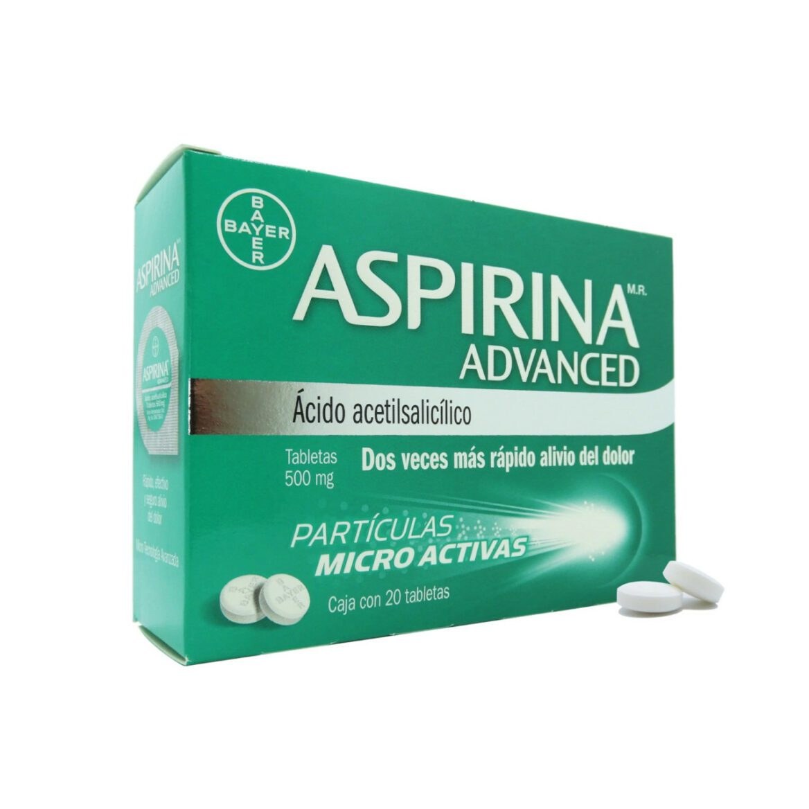 Información de uso y recomendaciones para el producto ASPIRINA ADVANCED 500 MG C 20 TABL OTC ACIDO ACETILSALICILICO. Consulta instrucciones del empaque y, si aplica, orientación profesional.