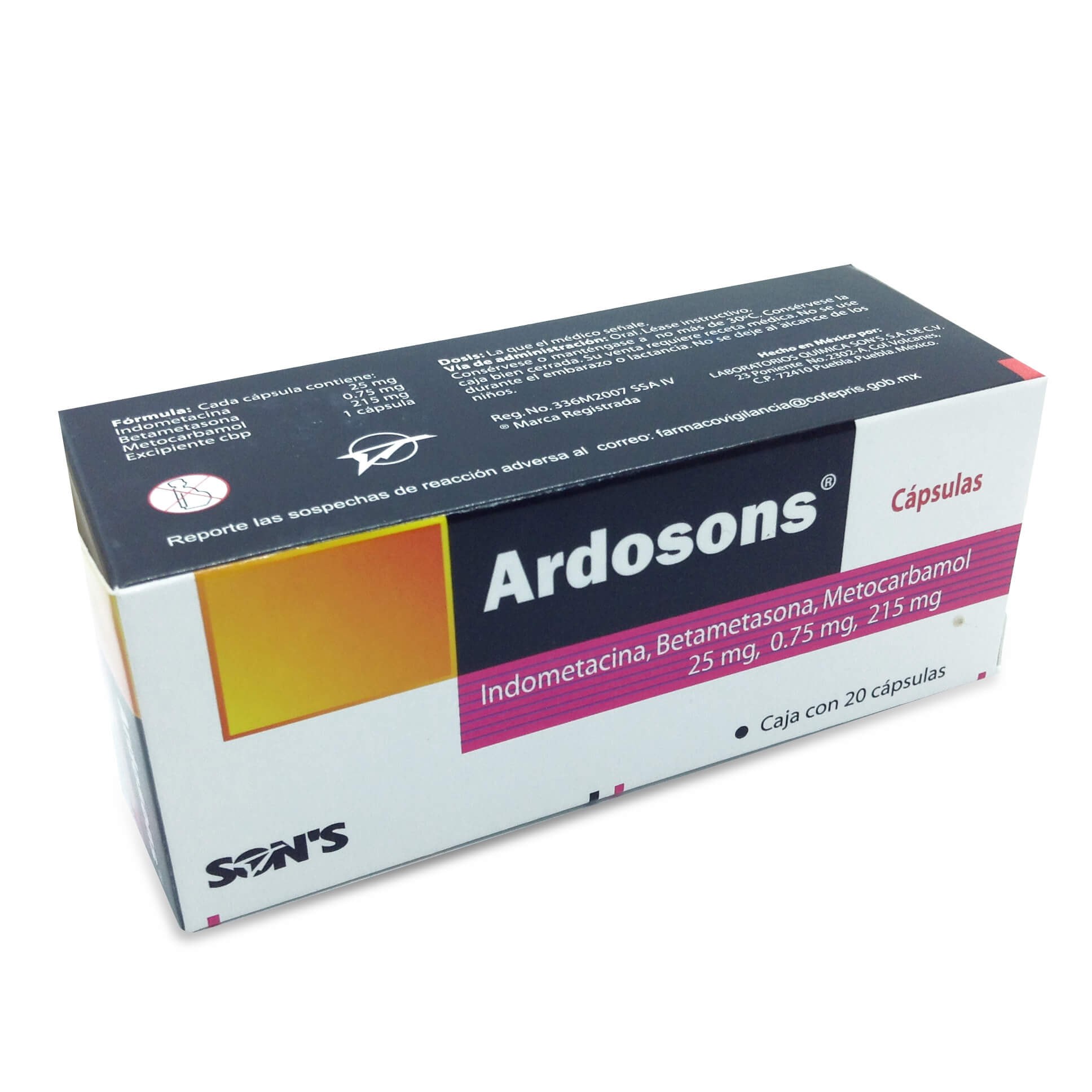 El ARDOSONS CAPSULAS INDOMETACINA BETAMETASONA METOCARBAMOL SON´S es un producto enfocado en el cuidado de la salud, bienestar, higiene o autocuidado.