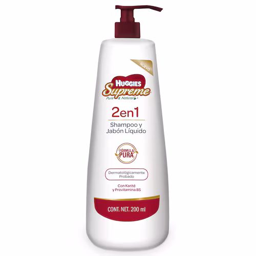 El SHAMPOO Y JBNLIQ HUGGIES SUPREME 200 MLN es un producto enfocado en el cuidado de la salud, bienestar, higiene o autocuidado.